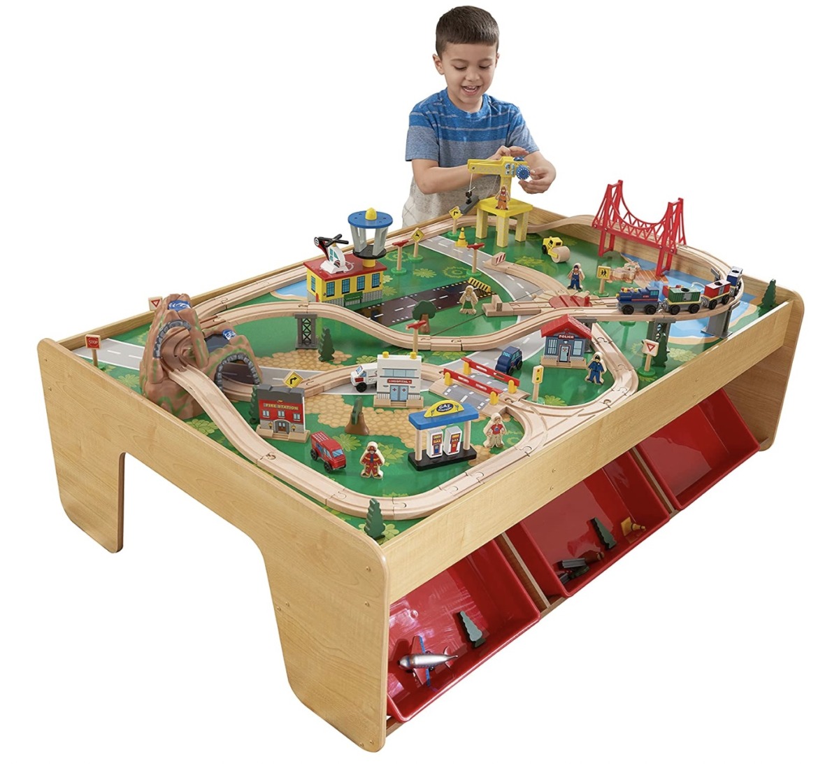 Das Eisenbahnset mit Spieltisch ist bei Amazon im Angebot.