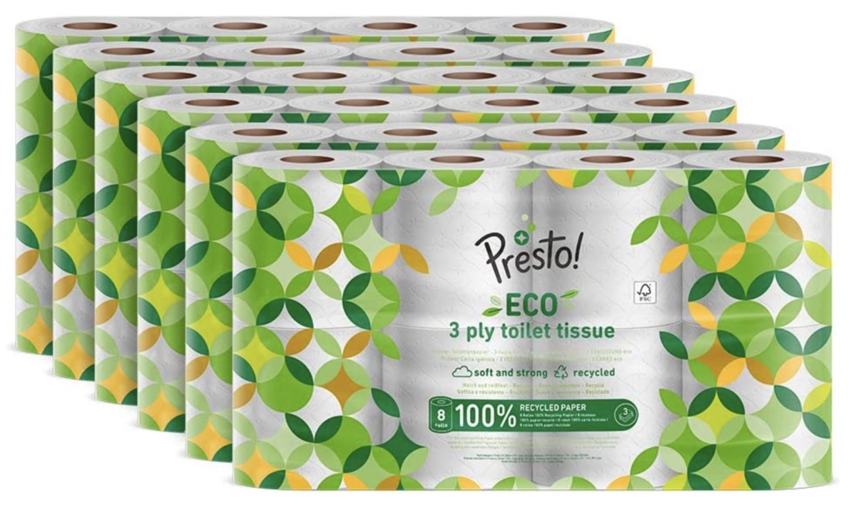 Das ECO Toilettenpapier ist bei Amazon im Angebot. Ihr erhaltet 6 Packungen mit je 8 Rollen (48 Rollen) bei Amazon im Sparabo für 19,03€. Wenn man als Prime Mitglied 3 Pakete bestellt, greift noch ein weiterer 15% Coupon automatisch an der Kasse.