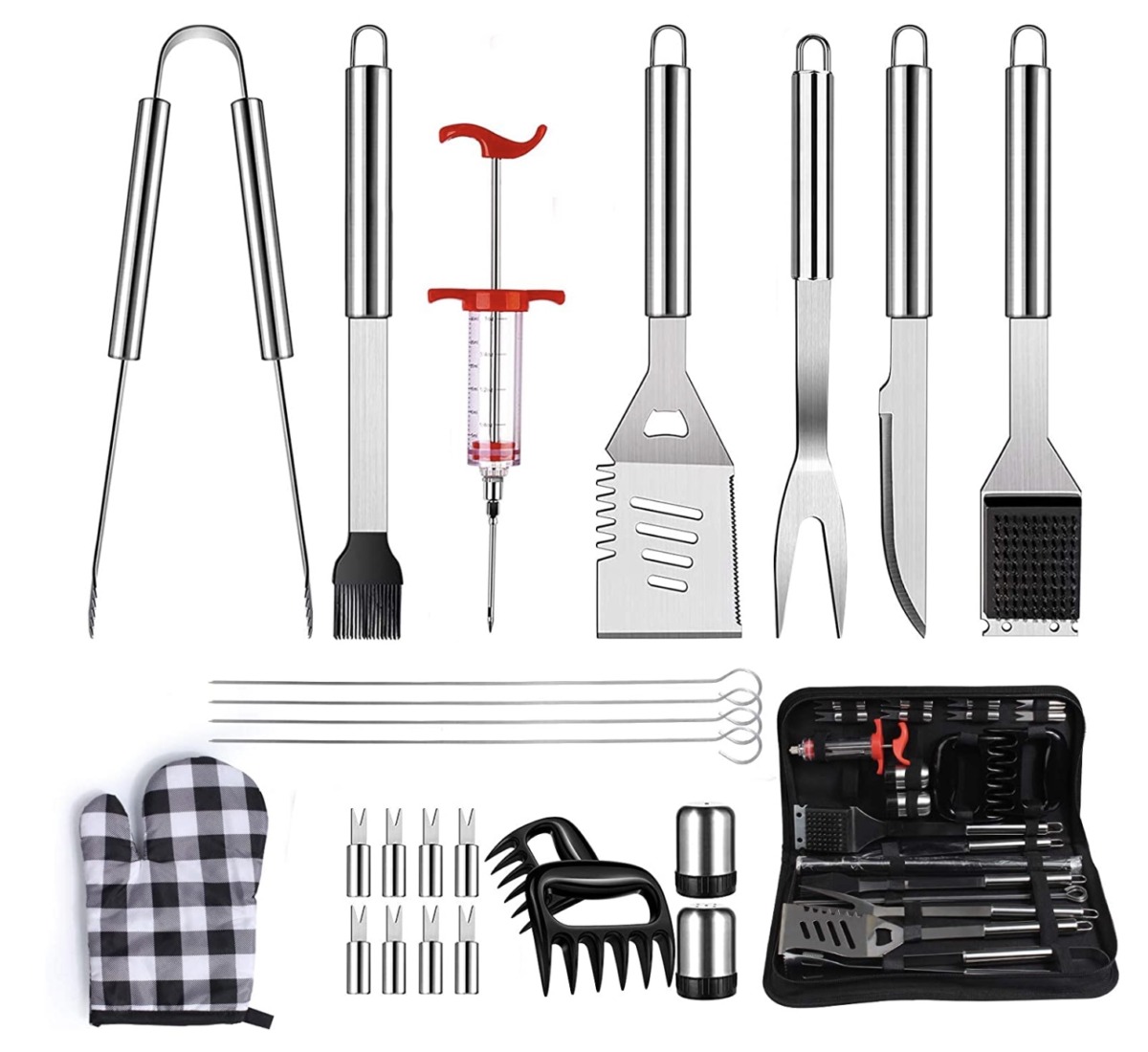 • Komplettes Grill-Kit: Unser Kit enthält Fleischklaue * 2, Grillzange * 1, Grillschaufel * 1, Kebab * 4, Gewürzflasche * 2, Grillersatzdrahtbürste * 1, Grillmatte * 1, Bürste * 2, Maisregal * 8, Grillgabel (lang) * 1, Eingelegte Spritze * 1, Aufbewahrungsbeutel * 1, Handschuhe * 1.