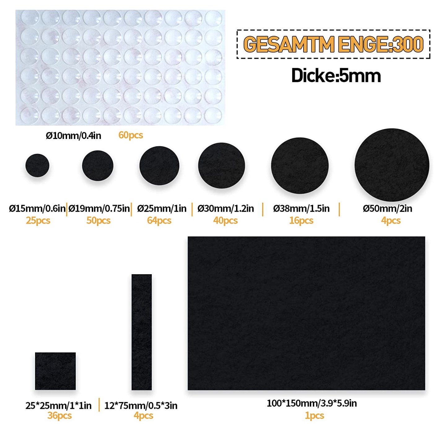 300er-Set Möbelgleiter aus Filz in 10 verschiedenen Größen