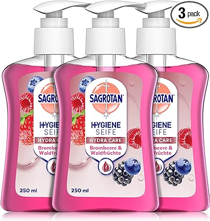 - LIEFERUMFANG: 3 x 250ml Flüssigseife Brombeere und Waldfrüchte von Sagrotan / Sanfte Reinigung mit erfrischendem Duft / Sanft zur Haut und stark gegen Bakterien