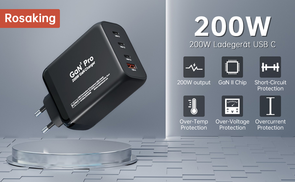 40€ Coupon beim Rosaking USB C Ladegerät 200W GaN III für iphone Apple Samsung MacBook