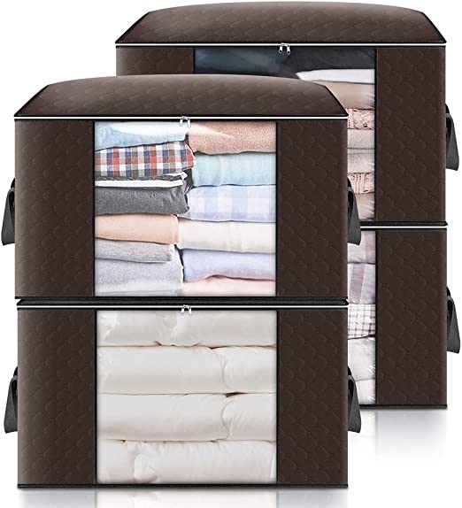 • ❤【GROSSE KAPAZITÄT】 Die Kleidungsaufbewahrungstasche wird im 4er-Set geliefert. Sie ist geräumig genug für Bettdecken, Decken, Kissen, Spielzeug, Jacken oder andere Kleidungsstücke. Es kann in Ihrem Kleiderschrank, unter dem Bett oder übereinander gestapelt aufbewahrt werden und lässt sich bei Nichtgebrauch flach zurückklappen.