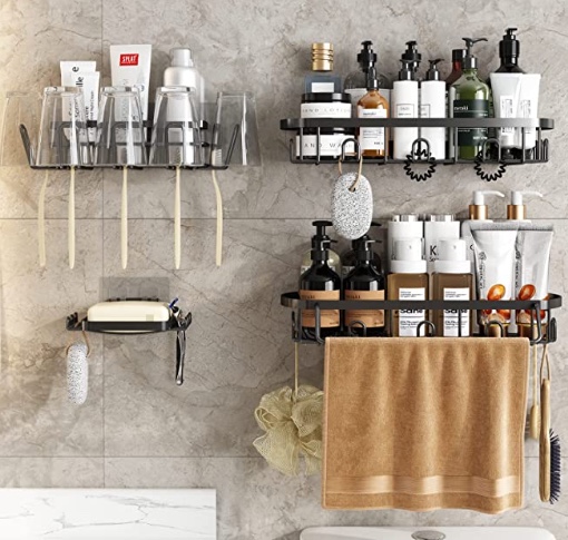 • 【Multifunktionales Duschregal】 2 Duschkörbe kommen mit 18 zusätzlichen Haken und einem Handtuchhalter. 1 Regal zum Aufhängen von Mundspülungsbechern auf dem Kopf, 1 Seifenhalter mit 6 Haken. Sie können Shampoo, Conditioner, Duschgel, Seife, Zahnpasta, Kamm und mehr aufbewahren. Mehrere multifunktionale Haken ermöglichen das Aufhängen von Rasierern, Duschschabern, Handtüchern, Zahnbürsten, Luffas, Schwämmen, Duschhauben und mehr. Ihr Badezimmer wird sauberer aussehen und Sie können alles, was Sie brauchen, leichter transportieren.