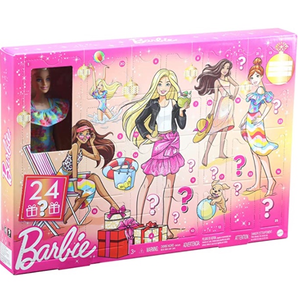 Mit dem Barbie Adventskalender mit 24 Überraschungen für Tag und Nacht und einer Barbie Puppe (30,4 cm) wird der Modespaß eingeläutet. Mit 24 modischen Überraschungsgeschenken während der Weihnachtszeit werden Kinder diesen Kalender lieben! Hinter jedem Türchen verbirgt sich ein Kleidungsstück, das sowohl für den Tag als auch für die Nacht geeignet ist, oder ein trendiges Accessoire – perfekt für modische Geschichten! Jeden Tag erleben Kinder eine Überraschung – so vergeht die Zeit bis Weihnachten wie im Flug! Die Verpackung ist modisch gestaltet und kann als Display oder Kulisse für noch mehr Mode-Spielspaß verwendet werden. Mit dem Barbie Adventskalender mit 24 verschiedenen modischen Teilen und Accessoires zum Entdecken und der Barbie Puppe vergeht die Zeit bis Weihnachten wie im Flug. Abweichungen in Farbe und Gestaltung vorbehalten. Die Puppe kann nicht von allein stehen. Das perfekte Geschenk für die Weihnachtszeit (oder auch danach)  für Kinder im Alter von 3 bis 7 Jahren.