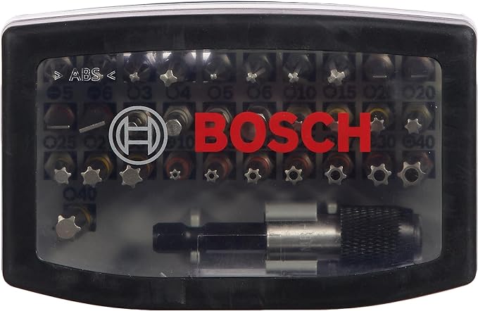 - Das Professional 32tlg. Schrauberbit-Set von Bosch – mit Außensechskantschaft der Größe 1/4-Zoll für allgemeine Schraubarbeiten mit Schraubendrehern und Bohrschraubern bestens geeignet