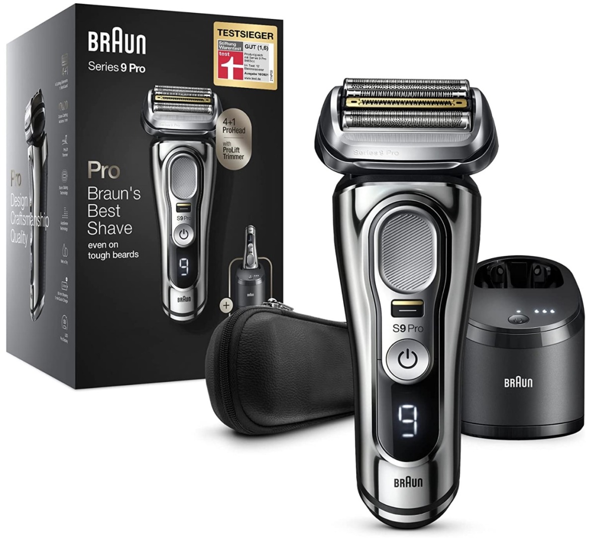 • Brauns bester elektrischer Rasierer: Testsieger bei Stiftung Warentest mit Gesamtnote 1,6 (10/2021). Der Series 9 Pro ist der effizienteste Rasierapparat von Braun, jetzt noch besser mit einem neuen Pro-Kopf