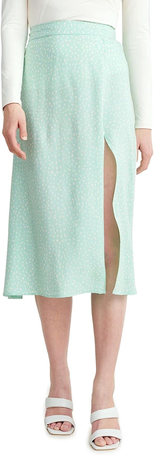 • Ausgestellter Rock aus weichem, fließendem Webstoff mit Tupfen-Muster, elastischem Bund und seitlichem Gehschlitz.