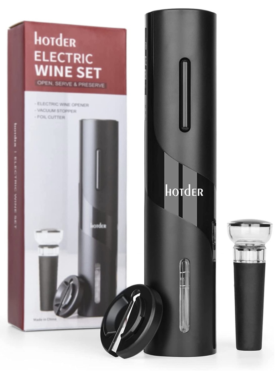 Das 3-tlg. Weinflaschenöffner-Kit enthält einen elektrischen Flaschenöffner, einen Folienschneider und einen Flaschenstöpsel. Löst den Rabattcode B09M3XP3 an der Kasse ein und spart 50% durch eine Werbeaktion.