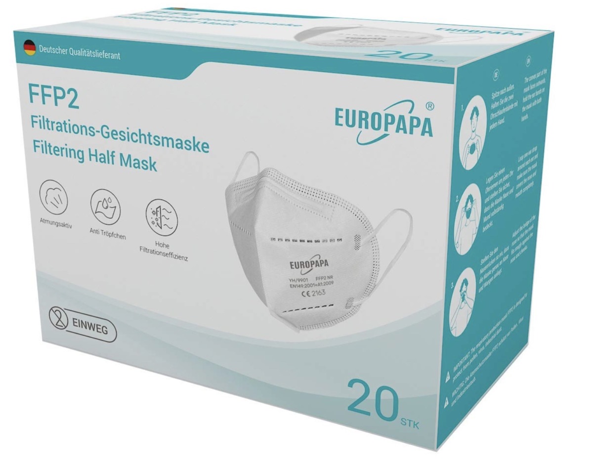 Der 20er Pack FFP2 Atemschutzmaske der Marke EUROPAPA ist bei Amazon im Angebot.
