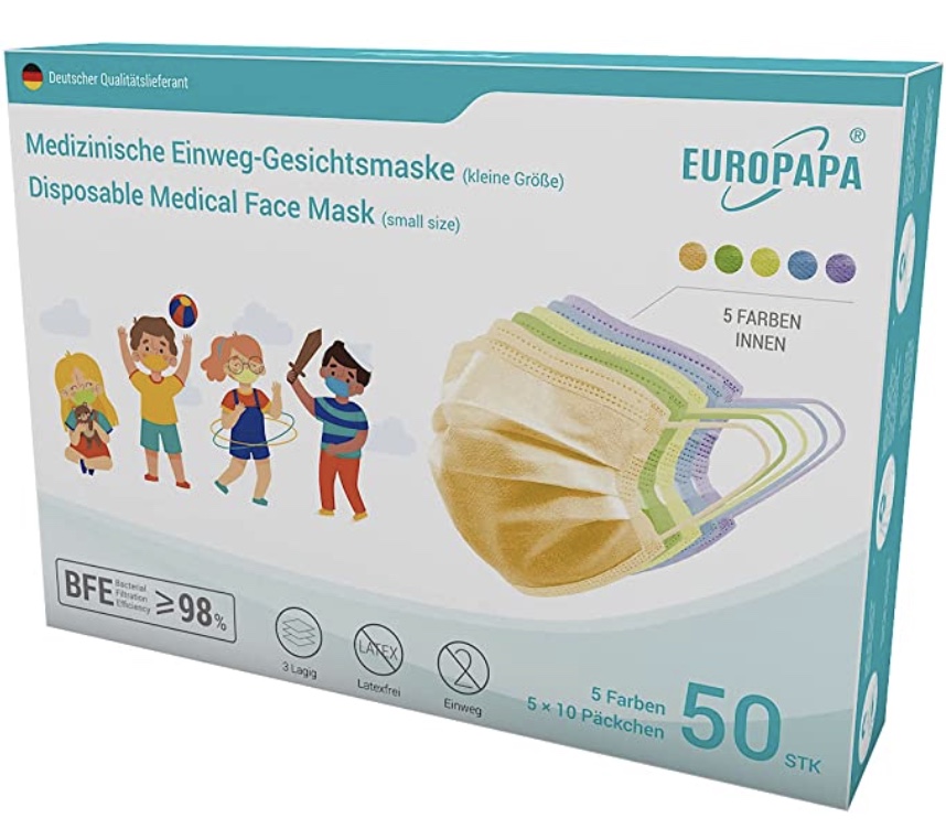Mini OP Maske 3-lagig in verschiedenen Farben als 50er Set für Kinder sind bei Amazon im Angebot.