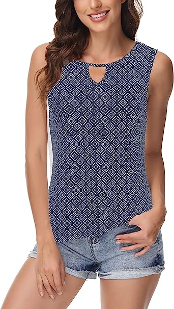 - Features: Rundhals, Ausschnitt mit kleiner Öffnung , Allover Muster Druck Sommer Tanktop, Ärmellos ; mit elastischem Saum für eine lockere Passform und
