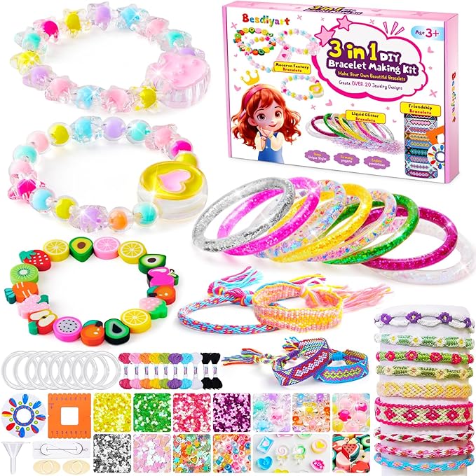 - 🎀 3-in-1 Schmuckbastelsets für Kinder – Unser Paket enthält drei verschiedene ausgefallene Armband-Bastelsets für Mädchen: Freundschaftsarmbänder, flüssige Glitzerarmbänder und Perlenarmbänder. Einzigartig und voller Spaß! Schritt-für-Schritt-Anleitungen für verschiedene Armbandstile helfen Kindern, sich schnell damit vertraut zu machen. Verbessern Sie die Kreativität und Feinmotorik Ihrer Kinder erheblich. Perfekte Bastelsets für Mädchen im Alter von 6–10 Jahren.