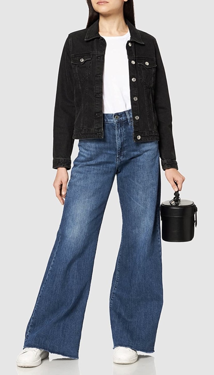 Diese Jeans hat einen besonders hohen Bund und weit geschnittene Beine und ist bei Amazon im Angebot.
