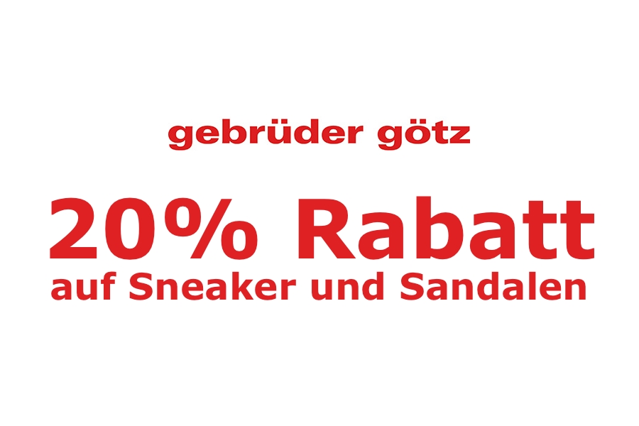 Im Onlineshop der gebrüder götz gibt es mit dem Rabattcode SOMMERDEAL coole 20 % auf Sneaker & Sandalen (inkl. Halbschuhe, Pantoletten etc.)