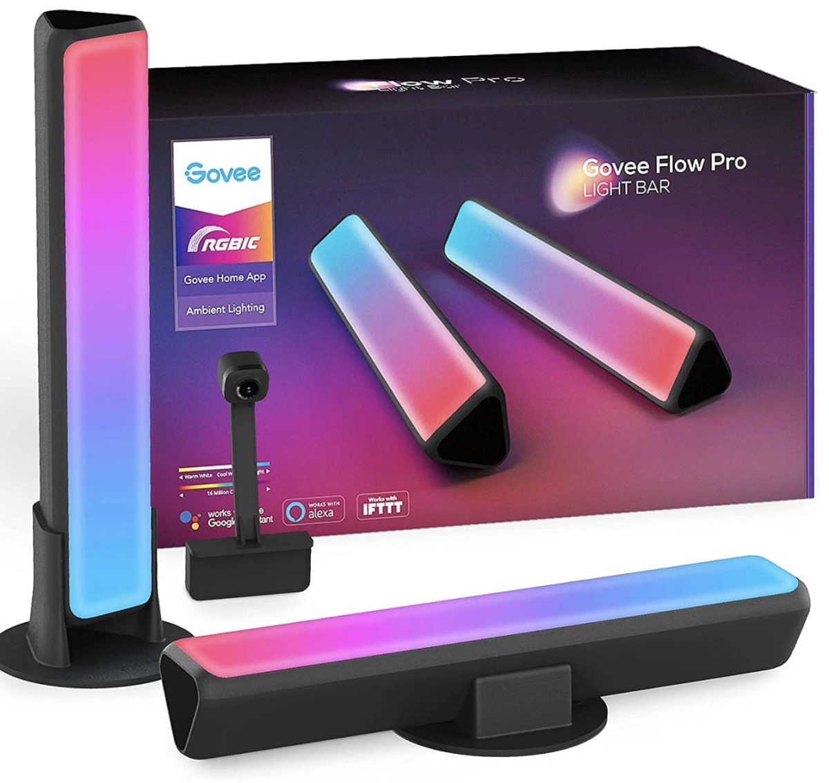 - Smarte Kamera: Die Kamera erfasst Farben auf Ihrem Fernsehbildschirm und wendet sie automatisch auf die Lightbars an. Genießen Sie die Synchronisierung, ohne ein HDMI-Kabel zu benötigen oder durch Streaming-Service eingeschränkt zu werden.