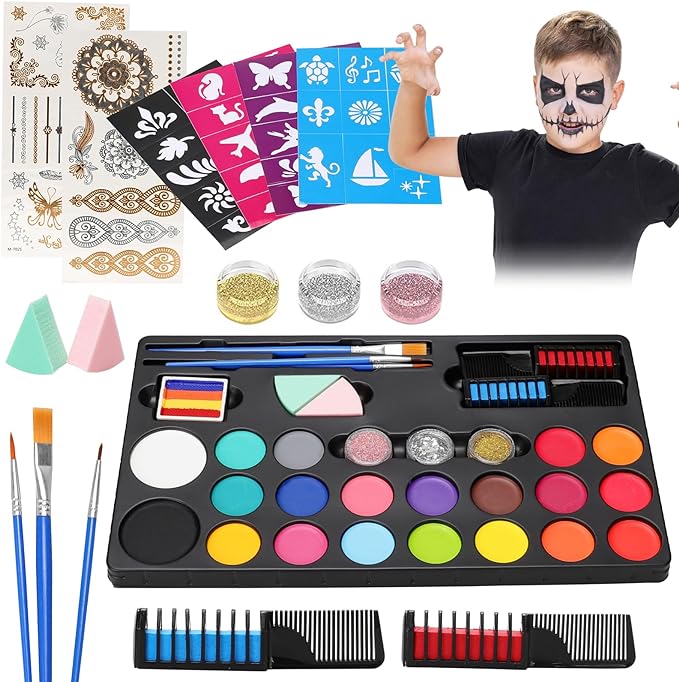 - 💝【Sicher und Hautfreundliche】Kinder theaterschminke set mädchen ist ungiftig, hypoallergen und nicht-paraben, geeignet für Kinder, Mädchen und Erwachsene. Das face paint body paint verwendet wasseraktivierte Zutaten, die für jedes Kind oder Erwachsene mit empfindlicher Haut geeignet sind, um mögliche Beschwerden zu vermeiden. Bitte machen Sie einen Allergietest, bevor Sie das Karnevals-Make-up verwenden.
