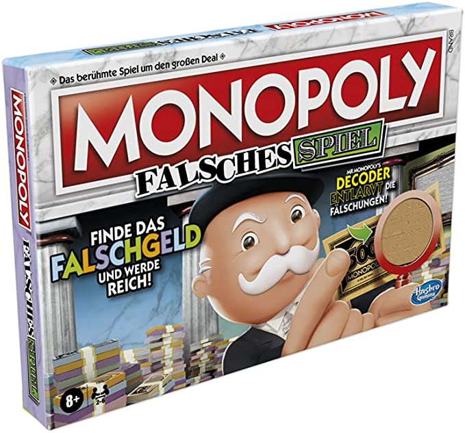 - MONOPOLY MIT EINER LUSTIGEN WENDUNG: Monopoly Falsches Spiel kommt zwar mit dem klassischen Spielablauf, aber mit einer besonderen Wendung im Spiel! Mit Monopolys Decoder können die Spieler Fälschungen entdecken