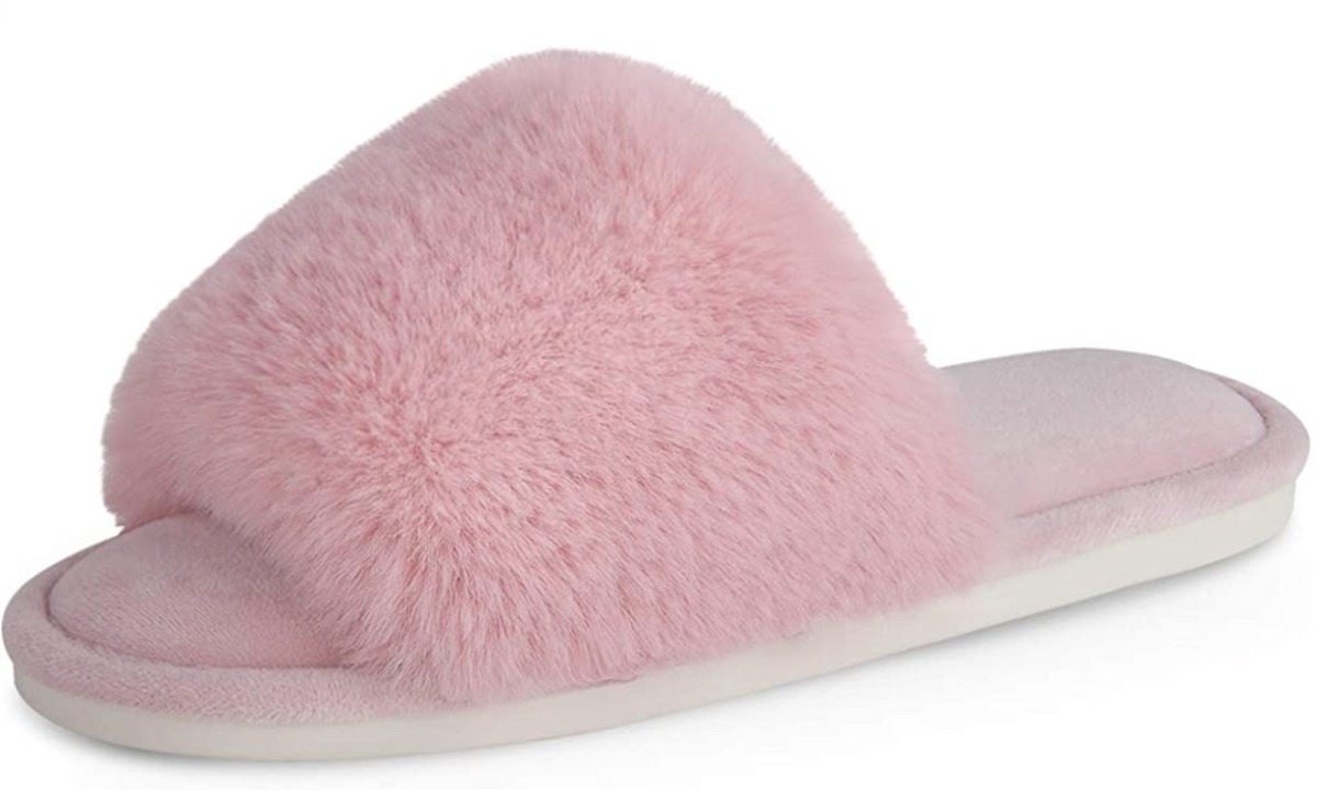 Stylische Hausschuhe für Damen aus Kunstpelz  bei Amazon im Angebot.