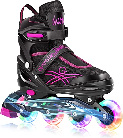 • ★【Verstellbare Rollschuhe】: Sie können die Größe einfach mit nur einem Knopf anpassen. Die Inline-Skates lassen sich an die Größe der Kinderfüße anpassen, was jahrelangen Spielspaß garantiert. Es stehen 3 Größen (S/M/L) zur Auswahl,Größe S ist für Kleinkinder (28-34), Größe M ist für ältere Kinder (35-38), Größe L ist für Teenager und junge Erwachsene (39-42). bitte beachten Sie unsere Größentabelle und wählen Sie bei Ihrer Bestellung die passende Größe aus.