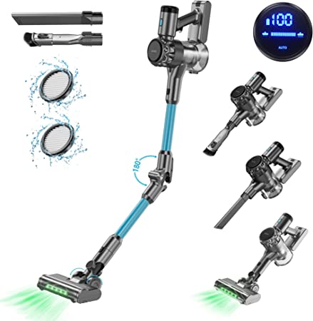 - 500W bürstenloser Motor und 33000Pa Saugleistung: Ausgestattet mit einem 500-Watt bürstenlosen Motor, hat der kabellose Staubsauger eine starke Saugleistung von bis zu 33000Pa, die so hoch wie 13.000 U/min läuft, ist ideal für das Saugen von Tierhaaren, Schutt, Asche und Staub, und für alle Arten von Böden, einschließlich Holzboden, Hartboden, auch für Teppich verfügbar.