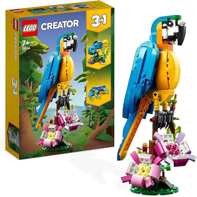 - Dieses LEGO Creator 3in1 Tier-Spielzeug-Set enthält 3 Tiere, die Kinder bauen können: einen Papagei, einen verspielten Frosch und einen Spielzeug-Fisch.