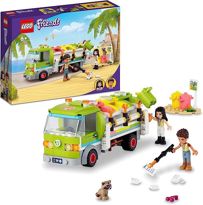 - Das LEGO 41712 Friends Recycling-Auto Lernspielzeug besteht aus einem Spielzeug Müllwagen mit Behältern mit Kippfunktion und Sitzen für die 2 Figuren und einem Waschbären