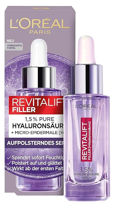 - Lieferumfang: 1x L’Oréal Paris Revitalift Filler Anti Age Serum gegen Falten, Mit konzentrierter Hyaluronsäure, 30 ml
