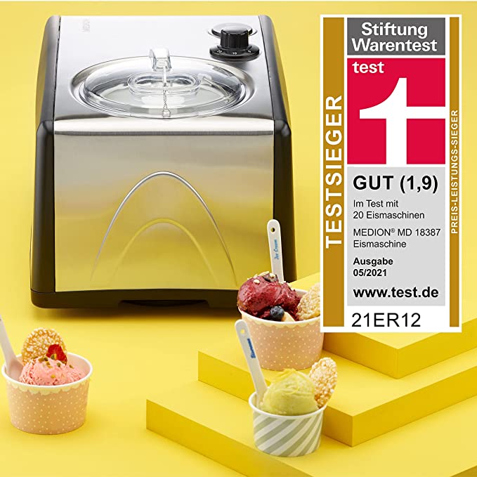 - Lieferumfang: Eismaschine MD 18387, Deckel, Rührwerkzeug, Messbecher, Spatel