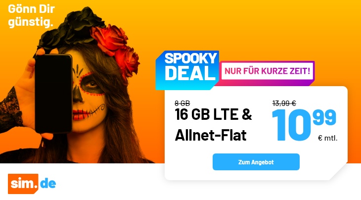 UPDATE 7 vom 26.10.22: Der 16 GB LTE Tarif ist wieder für 10,99€ als Spooky Deal bestellbar.