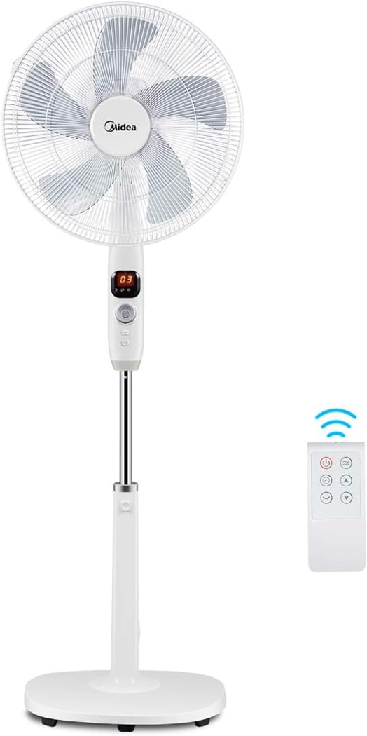 - 【12 Geschwindigkeiten&3 Modi】Beim normalen Windmodus kann die Windgeschwindigkeit in 12 Stufen eingestellt werden. Im Modus „Leise“ läuft der Midea Standventilator mit einer kaum hörbaren Geschwindigkeit. Die Windgeschwindigkeit wird automatisch basierend auf der Raumtemperatur geändert.