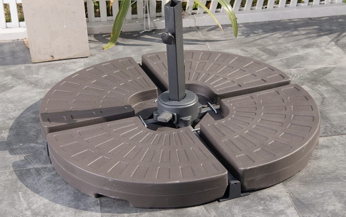 - Der Sonnenschirmständer besteht aus dicken Kunststoff, tragbar, starke Fähigkeit Belastbarkeit. Mit abgerundeten Kanten entworfen, ist der Schirm sicherer.