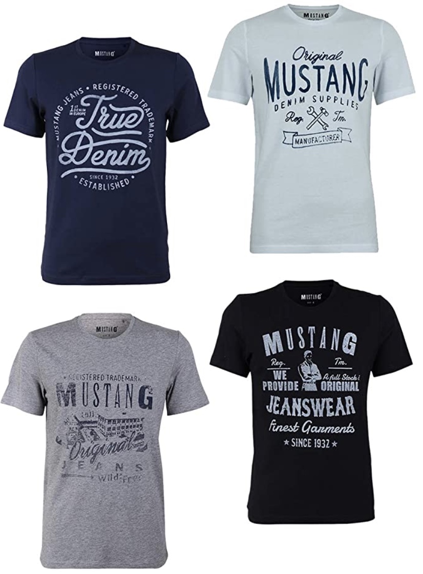 - tolles Mustang Sommer T-Shirt im 4er Pack für den Urlaub oder die Freizeit, modisch bedruckt mit einem originellen Print