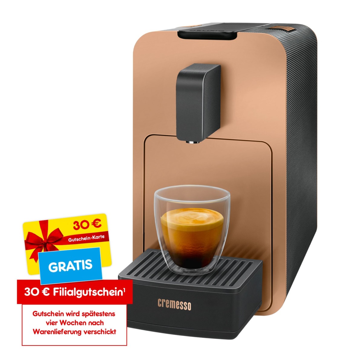 Aktion nur online gültig bis 31.12.2022. Ein 30 € Filial-Gutschein gratis zu jeder Bestellung einer Cremesso Viva Kaffeemaschine. Versand des Filial-Gutscheins erfolgt 4 Wochen nach Warenlieferung per Mail. Vervielfältigung jeglicher Art nicht gestattet. Der 30 € Filial-Gutschein ist ohne Mindesteinkaufswert einlösbar bis zum 31.03.23.
