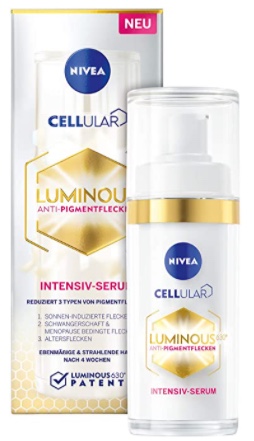 - Cellular Luminous– Das NIVEA Cellular Luminous Intensiv-Serum reduziert 3 Typen von Pigmentflecken und sorgt für eine ebenmäßige und strahlende Haut.