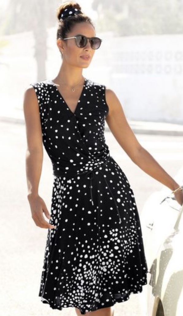 Warme Sonnenstrahlen kitzeln auf deiner Haut, das Gras kitzelt an deinen Füßen und das Eis schmilzt auf deiner Zunge: Beim Anblick des Kleids von Vivance träumt man gerne von den warmen Tagen des Jahres. Seine weich fließende Viskose zeichnet sich als besonders trageangenehmes Material aus. Neben dem V-Ausschnitt in Wickeloptik und dem Druckknopfverschluss spricht auch das weite Rockteil des Midikleids für einen luftig-leichten Style. Elegante Sandalen und Accessoires machen dieses Kleid von Vivance komplett.