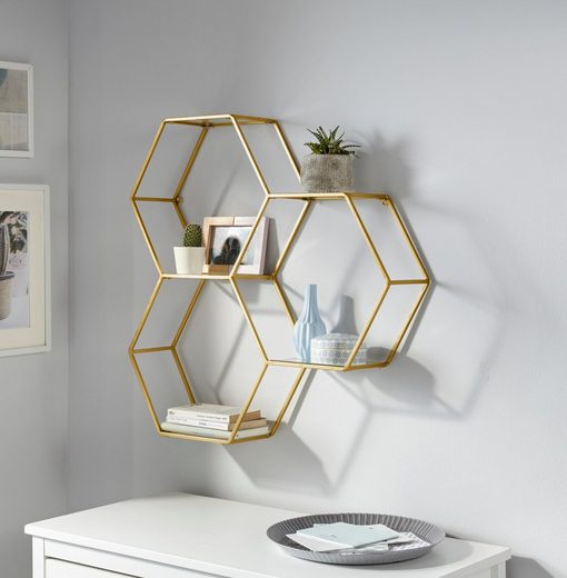 Wow – das faszinierende Wandregal »Hexagon« von Leonique macht jede Wohnungseinrichtung zu einer Besonderheit. Die tollen Fächer sind in ausgefallener Octagon-Form – echte Blickfänge. Verschiedene Dekorationsartikel, wie Figuren oder Blumen, können in diesem Regal optimal platziert werden und kommen wunderbar zur Geltung. Aus Metall und Glas hergestellt macht das Möbelstück zu einer pflegeleichten Ergänzung jedes Mobiliars. Trotz des exklusiven Designs kann das Produkt in vielen verschiedenen Räumen Platz finden. Ein Highlight, das sofort ins Auge fällt – das ist das Wandregal »Hexagon« von Leonique!