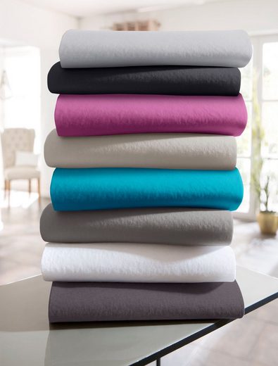 Das Spannbettlaken »Single-Jersey 2« der Marke my home kann in mehrfacher Hinsicht überzeugen. Es ist aus pflegeleichtem Jersey hergestellt. Dieser Stoff ist dehnbar und anschmiegsam, durch den umlaufenden Gummizug schmiegt sich das Bettlaken im faltenfreien Sitz um die Matratze. Da es in mehreren Größen erhältlich ist, kann jede gängige Matratze bis zu einer Höhe von 35cm mit dem Bettlaken bespannt werden. Das Laken steht in einer großen farblichen Auswahl zur Verfügung. Das große Farbspektrum umfasst viele Nuancen, die praktisch universell zu allen Bettwäschegarnituren passen. Pflegeleicht lässt sich das Laken bei 60° in der Maschine waschen. Das Spannbettlaken »Single-Jersey 2« ist ebenso praktisch wie modisch und damit eine Bereicherung für das Ambiente im Schlafraum.
