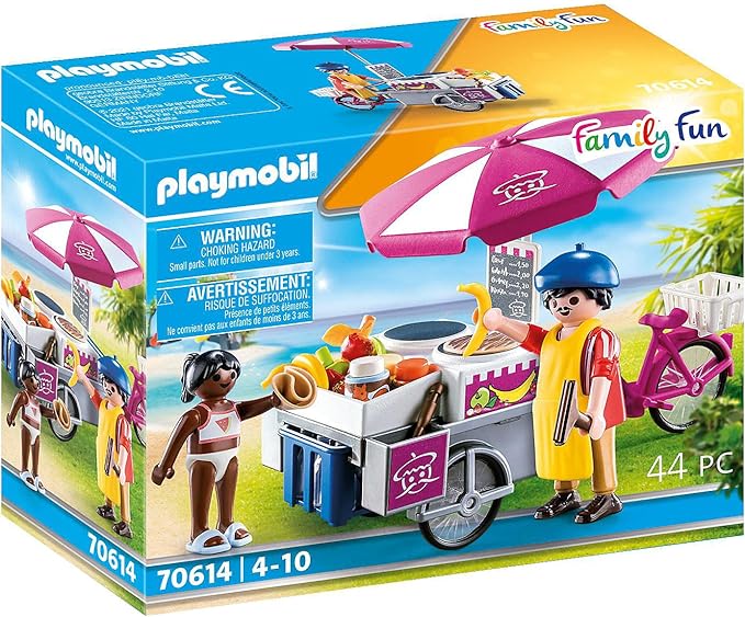- Lieferumfang: 1x PLAYMOBIL Family Fun Mobiler Crêpes-Verkauf, 44-teiliges Spielfiguren-Set mit Anleitung: 1 Verkaufswagen, 2 Figuren, 41 Zubehörteile, , LxTxH: 14x7x14,5 cm, Gewicht: 100 g, 70614