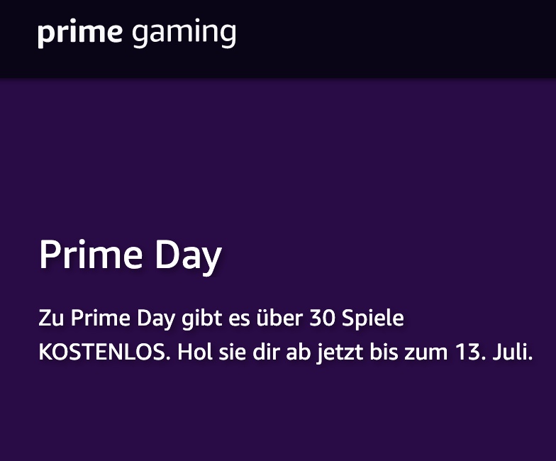 Zu Prime Day gibt es über 30 Spiele KOSTENLOS. Hol Sie Euch ab jetzt bis zum 13. Juli. Ihr benötigt dazu nur eine Prime Mitgliedschaft.