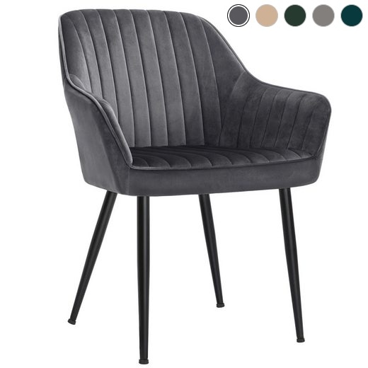 - [Ein Hauch von Eleganz] Gesteppte Samtoberfläche in Grau, Metallbeine in Schwarz – der Polsterstuhl versprüht Eleganz und verleiht Ihrer Wohnung eine moderne Note!