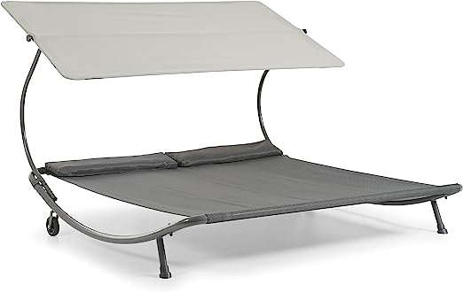 LECO Stella Gartenliege mit lichtgrauem Sonnendach für Zwei Personen, 200x202x157 cm