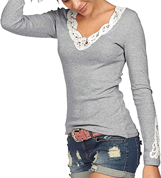 - Mit schönem V-Ausschnitt, langärmliges Oberteil, Elegant damen und wunderschöner Spitzen Ärmeln