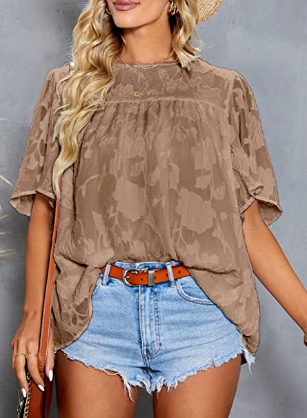 - Damen Tunika ist Kurzärmel mit Glockenärmel Spitzen, Rundhals und Floral strukturiert in sehr schick Design, elegant und casual. Elegancity Bluse super für Sommer.