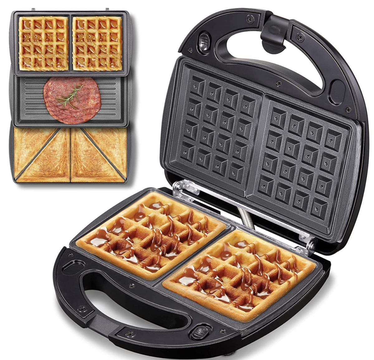 • 3-in-1-Sandwichmaker – Mit 3 abnehmbaren Tellern (21,5 x 14,5 cm) für Sandwiches, Waffeln und Grillplatten für Steak, Hühnchen usw. Sparen Sie Platz auf Ihrer Theke, anstatt eine weitere Panini-Presse zu haben.